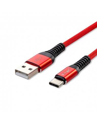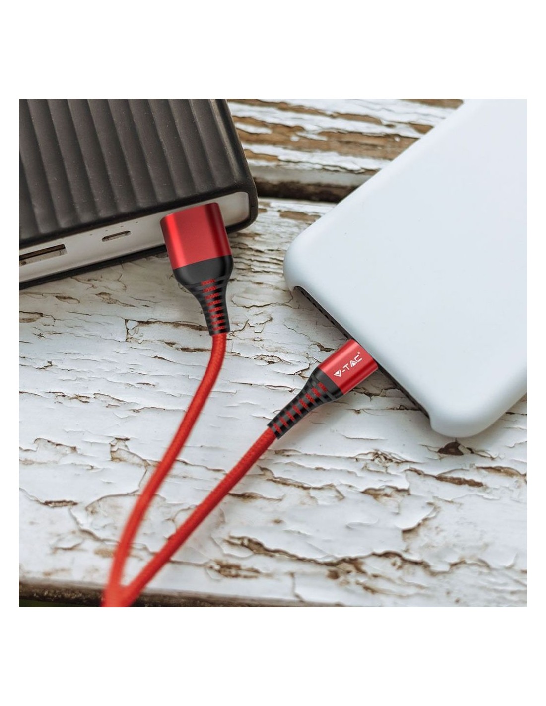 V-TAC Cavo da USB Tipo-C a USB-A 1m Ricarica Rapida 2.4A Gold Series Cavo Antigroviglio in Corda Colore Rosso