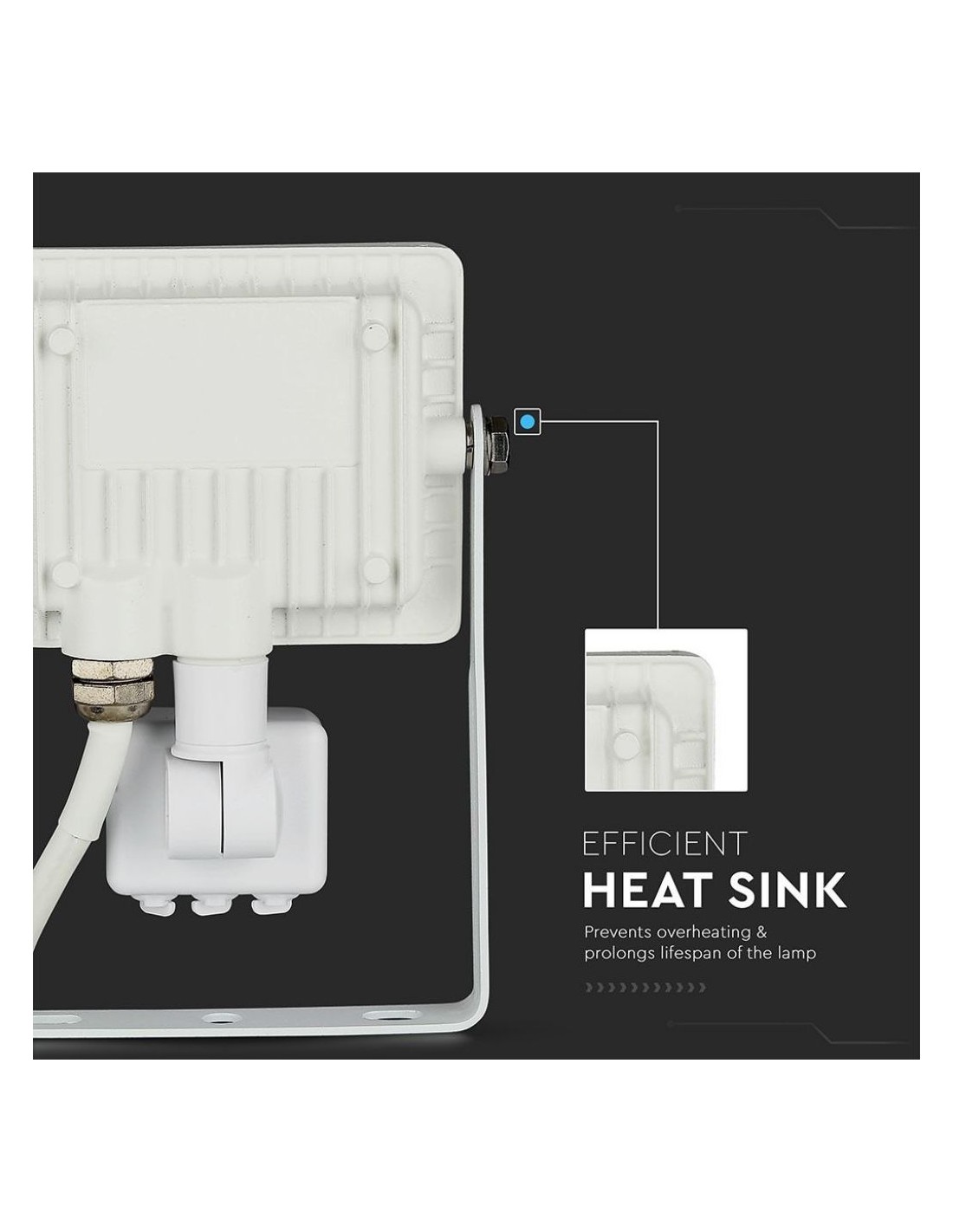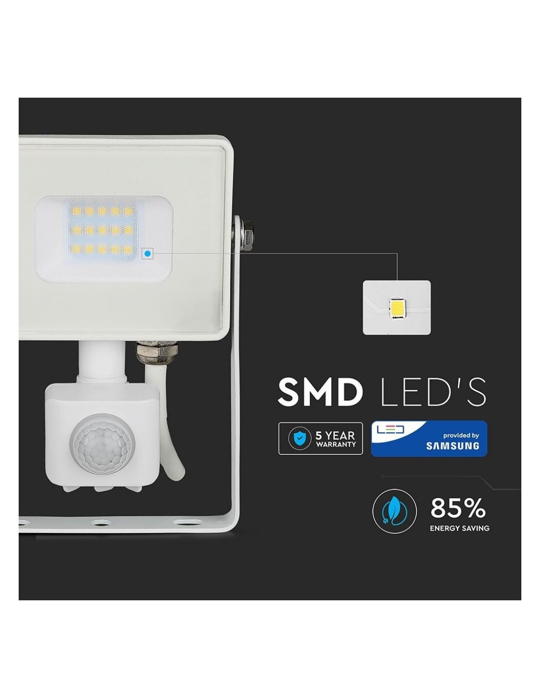 L'articolo v-tac con sku 434, categoria fari - con sensore: faro led potenza pro vt-10-s con potenza di 10w e corpo ultra sottile in alluminio pressofuso di colore bianco fascio luminoso di 100°, flusso luminoso di 800 lm e rapporto di 80 lm/w la potenza di 10w è equivalente a 50w di un faro alogeno il nuovo design slim rende il prodotto più leggero e più semplice da installare, oltre ad avere un'estetica più accattivante dei normali fari. Adatto all'uso esterno grazie al grado di protezione ip65