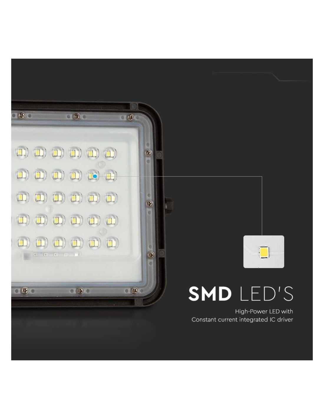 V-tac vt-80w sku 7823 è un faro led esterno con colore della luce bianco freddo 6400k di alta qualità con alimentazione solare, progettato per offrire un'illuminazione potente e affidabile. Con una potenza di 10w e l'adozione della tecnologia led smd, questo faro garantisce una luminosità ottimale in ogni situazione. La sua struttura è realizzata in alluminio resistente di colore nero, mentre la copertura trasparente assicura una diffusione chiara e diretta della luce._x000D_ _x000D_ _x000D_ il faro presenta un fascio luminoso ampio di 120°, capace di produrre un flusso luminoso di 800 lm. Questo si traduce in un'efficienza luminosa di 80 lm/w, garantendo un'illuminazione efficiente e costante. La robustezza del prodotto è ulteriormente evidenziata dal suo grado di protezione ip65, che lo rende resistente alle intemperie e ideale per l'uso esterno, anche in condizioni di pioggia prolungata._x000D_ _x000D_ _x000D_ _x000D_ _x000D_ _x000D_ _x000D_ _x000D_ _x000D_ _x000D_ alimentazione e controllo_x000D_ _x000D_ una delle caratteristiche distintive di sku 7823 è la sua capacità di alimentazione solare. Dotato di un pannello solare di dimensioni 174 x 340 mm, il faro è in grado di operare in modo autonomo grazie alla batteria integrata da 6000mah. Questa combinazione permette al faro di garantire un'autonomia di 12 ore, con un tempo di ricarica compreso tra 4 e 6 ore. La flessibilità nell'installazione è assicurata dal cavo di collegamento da 3 metri, che permette di posizionare il pannello solare nella posizione più ottimale._x000D_ _x000D_ _x000D_ per una gestione pratica e personalizzata dell'illuminazione, il faro viene fornito con un telecomando. Questo strumento permette di accendere e spegnere il dispositivo, regolarne l'intensità luminosa e attivare diverse modalità operative, tra cui una funzione timer di spegnimento programmabile a 3/5/8 ore._x000D_ _x000D_ _x000D_ _x000D_ installazione e accessori_x000D_ _x000D_ per una corretta installazione, si consiglia di posizionare il faro ad un'altezza di circa 3,5-4 metri. Nel pacchetto sono inclusi tutti gli accessori necessari per un montaggio sicuro e stabile, tra cui un kit di installazione completo. La sua versatilità lo rende adatto a diverse tipologie di ambienti esterni, garantendo sempre un'illuminazione di qualità.