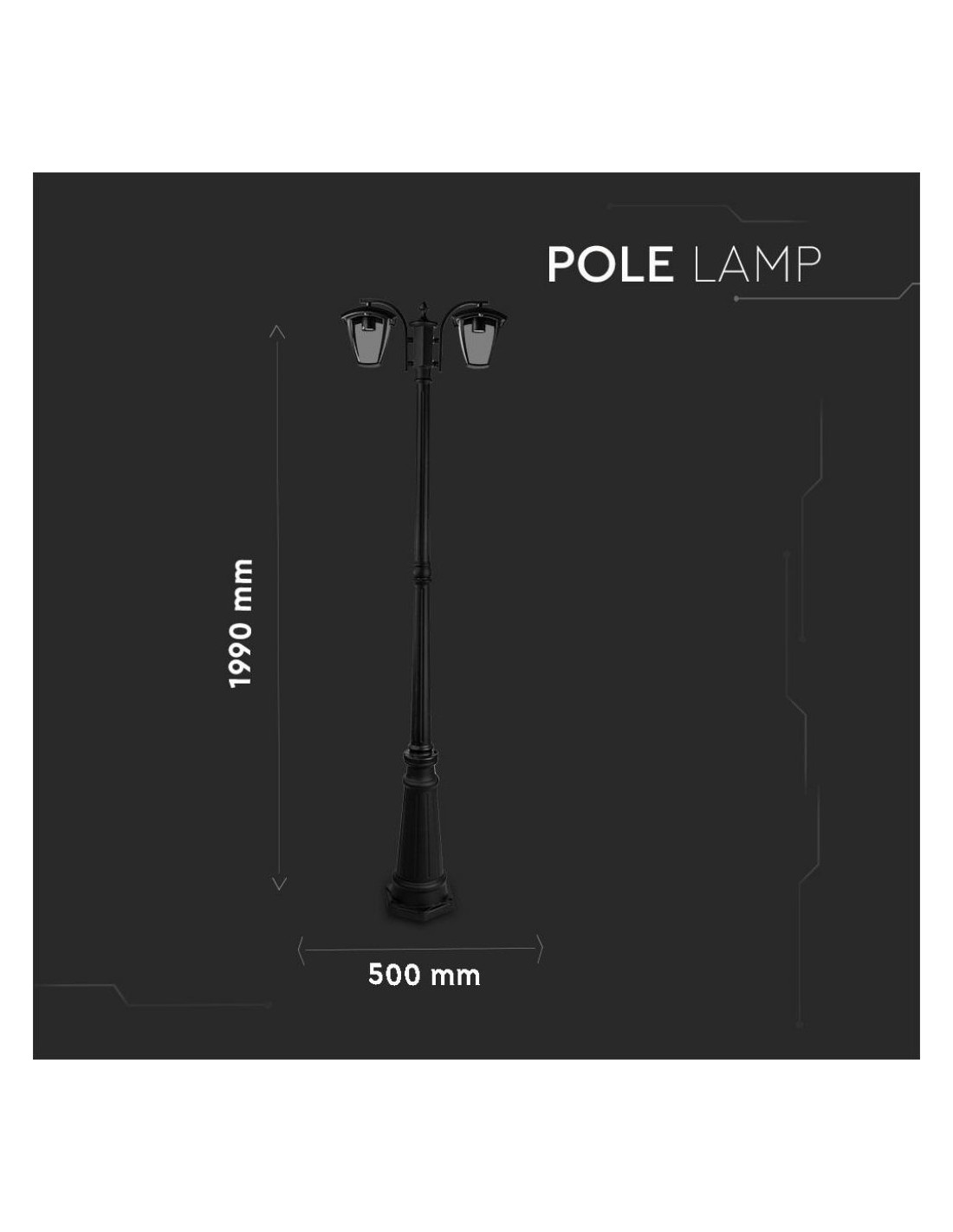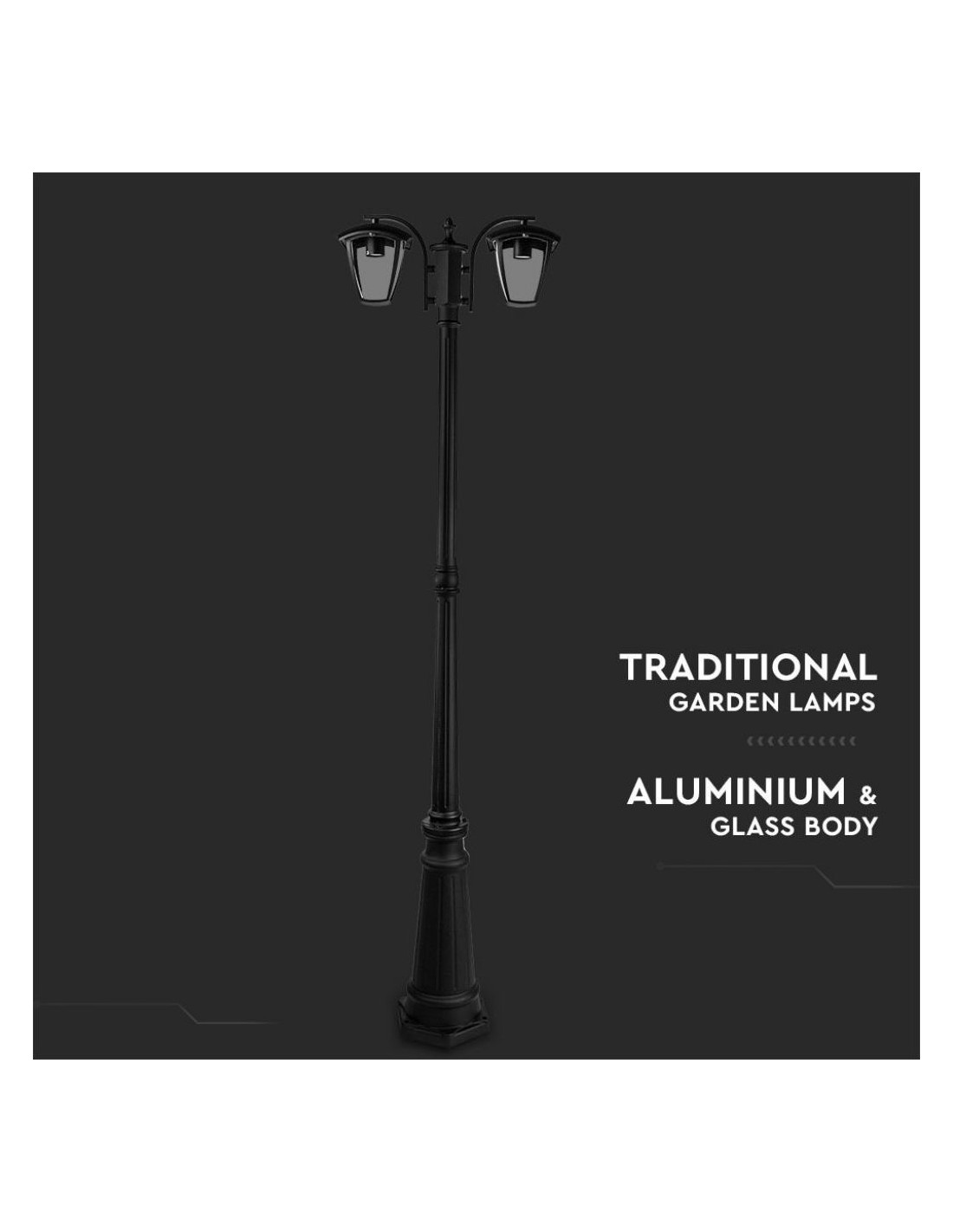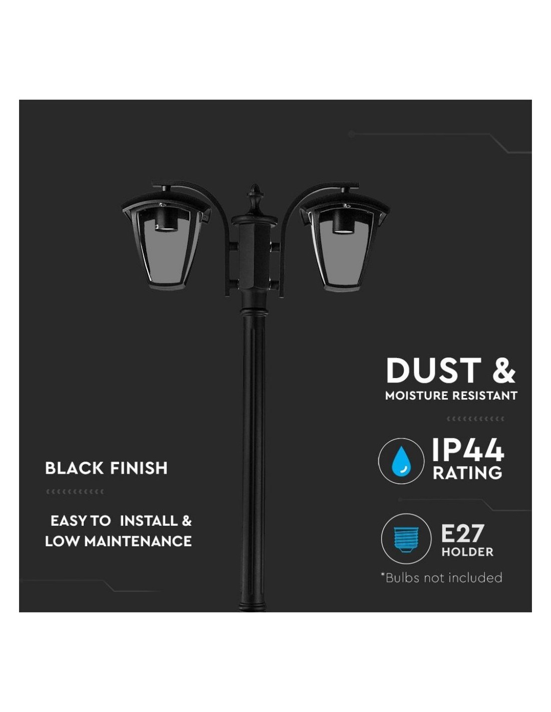 V-TAC Lampione LED con Portalampada E27 (Max 2*60W) Colore Nero h: 199cm IP44