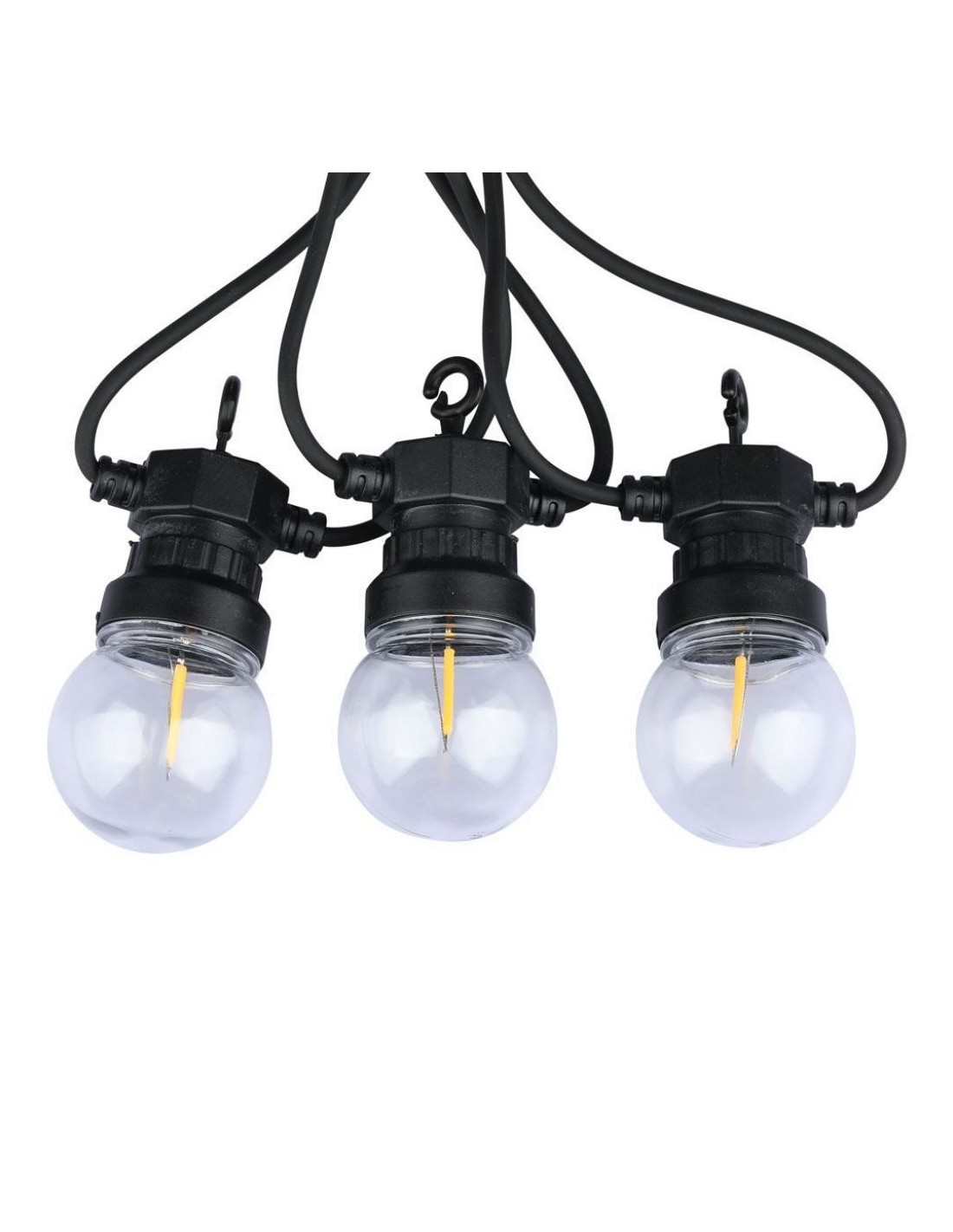 Catenaria 5m con 10 Lampadine mini Globo a Filamento LED 4W Nero con Trasformatore 3000K