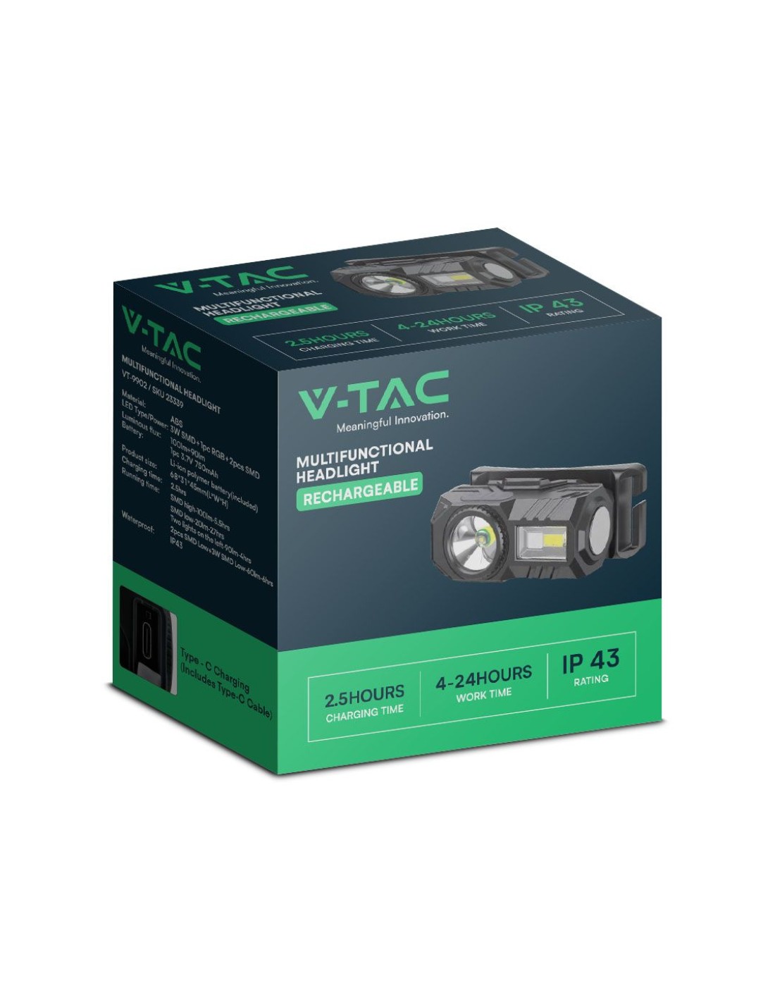 V-TAC Torcia LED Frontale 3W SMD+RGB 190lm con Cintura in Silicone e Batteria Ricaricabile USB C IP43
