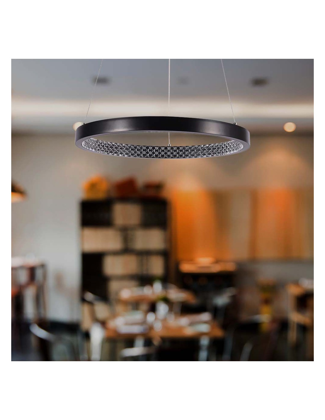 Lampadario LED a Sospensione Circolare 19W in Metallo Nero d: 40cm h: 108cm 4000K