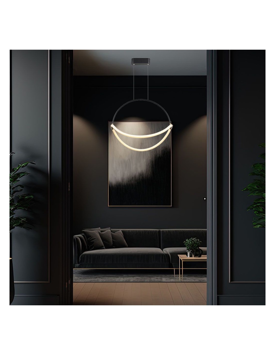 Lampadario LED a Sospensione Moderno 16W dal Design Elegante e Minimalista 500x160x1700mm Nero Opaco 3000K