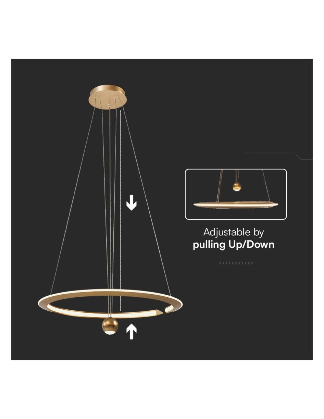 V-TAC Lampadario LED a Sospensione Circolare 46W dal Design Regolabile Moderno e Elegante in Metallo 620*1200mm Colore Oro Spazzolato 3000K