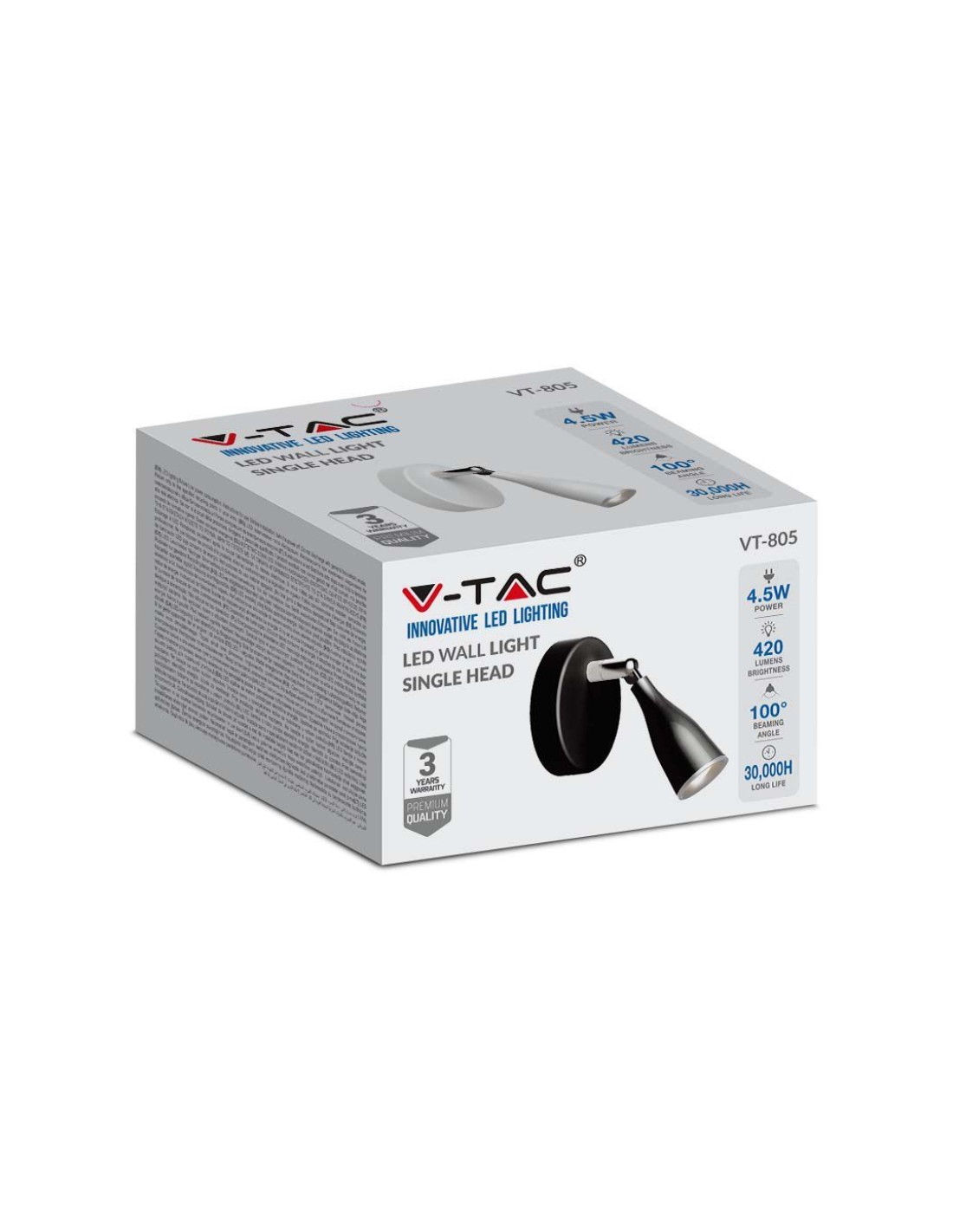V-TAC Faretto LED da Muro 4,5W con Testa Orientabile Colore Nero 3000K IP20