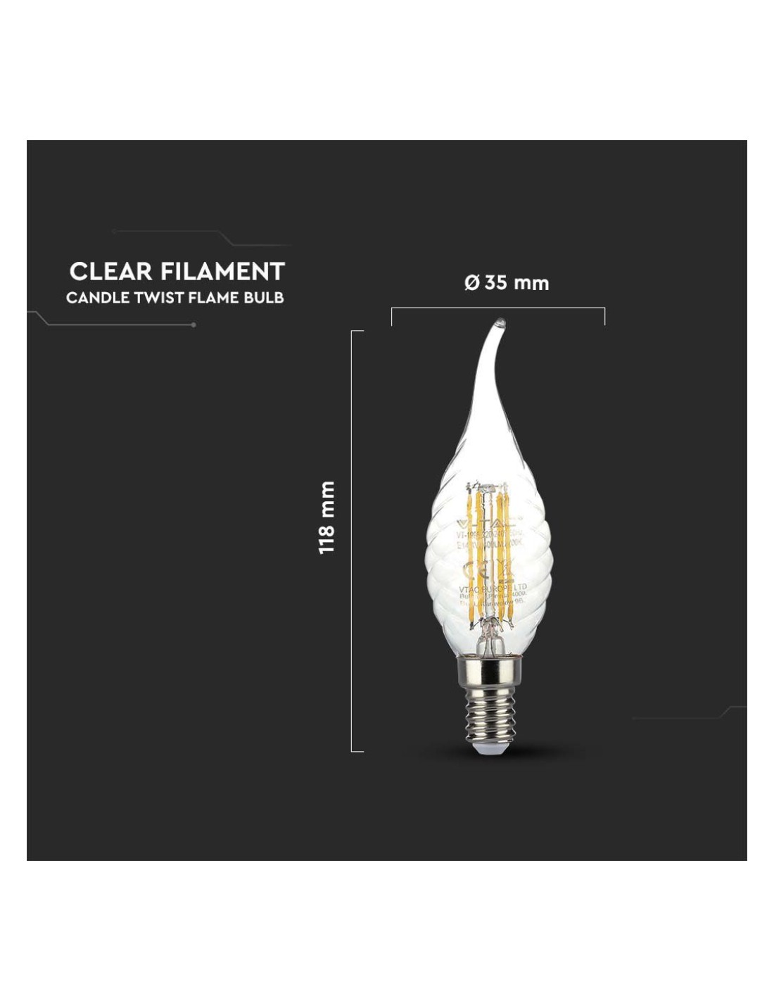 V-TAC Lampadina LED E14 4W 100LM/W Candela a Fiamma Tortiglione Filamento 3000K