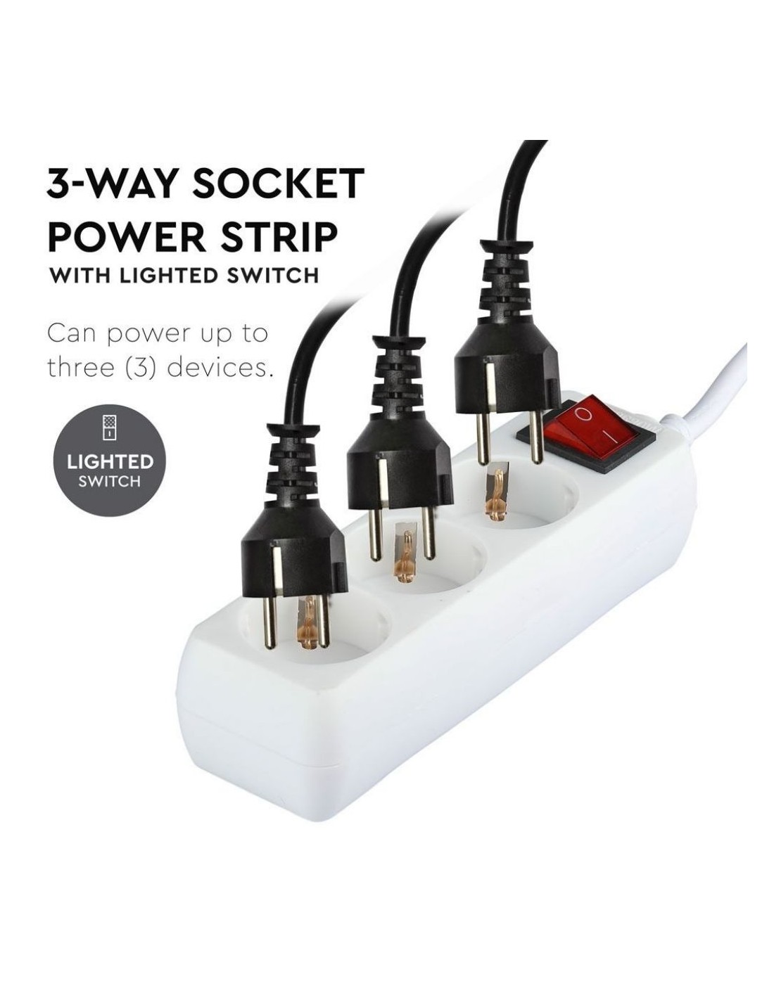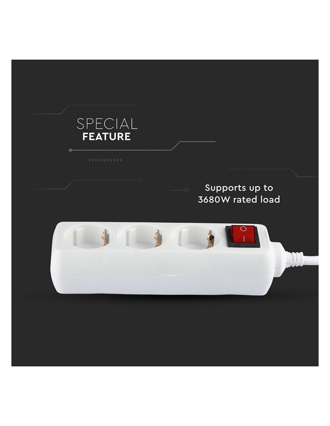 V-TAC Multipresa con Cavo 5m e 3x Prese Schuko 16A, Spina 16A e Interruttore Colore Bianco