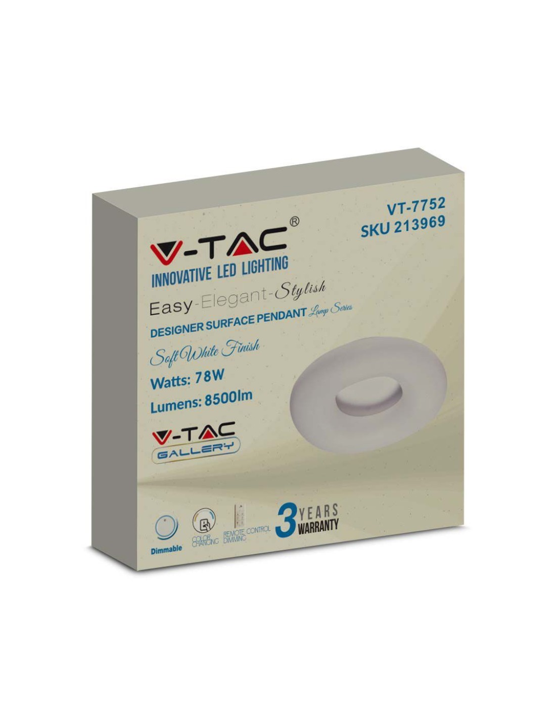 V-TAC Plafoniera LED Circolare 78W con Telecomando Cambio Colore 3 in 1 Corpo Bianco d: 75cm h: 13cm Dimmerabile