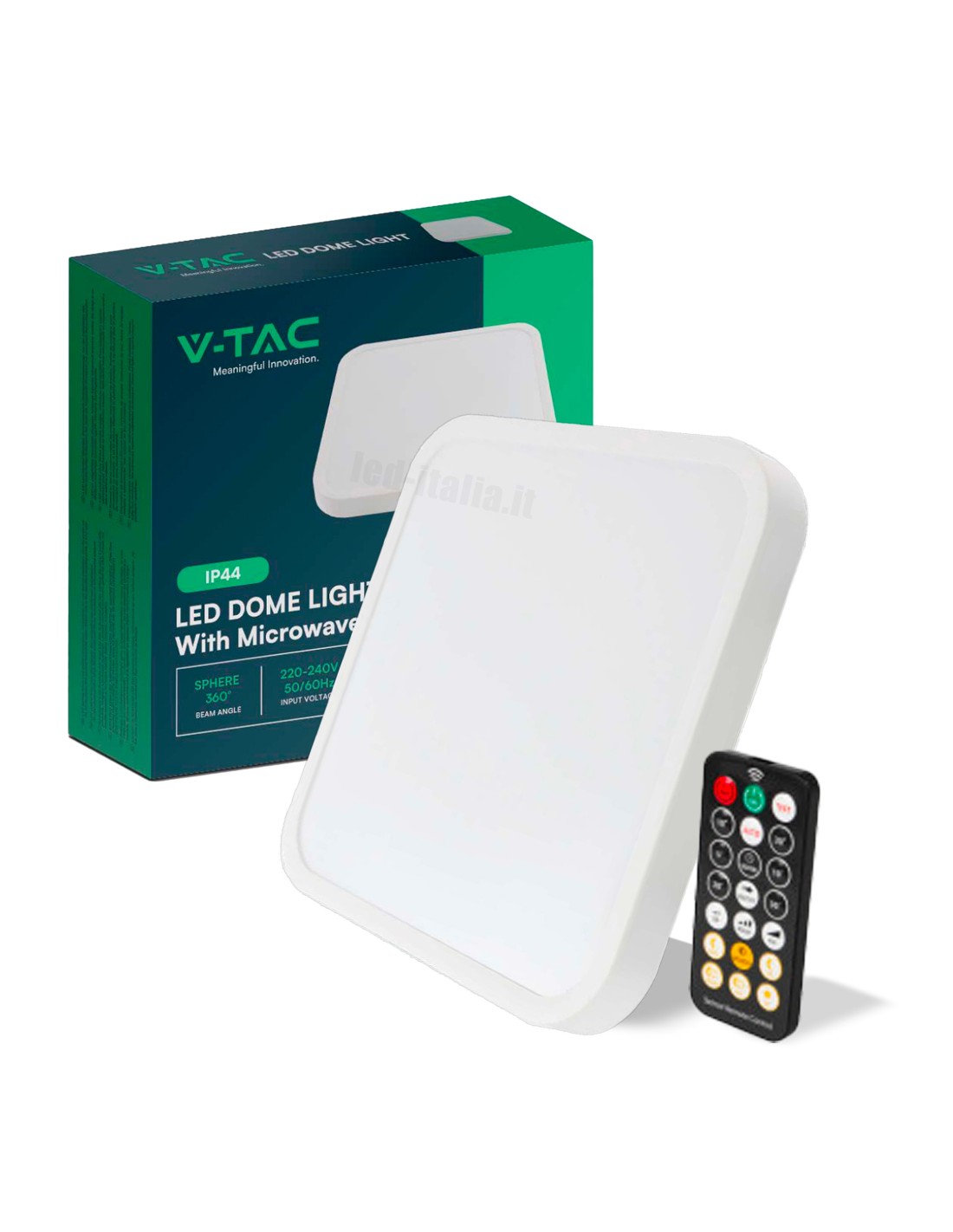 V-TAC Plafoniera LED Quadrata 36W con Telecomando e Sensore di Movimento a Microonde Colore Bianco 4000K IP44