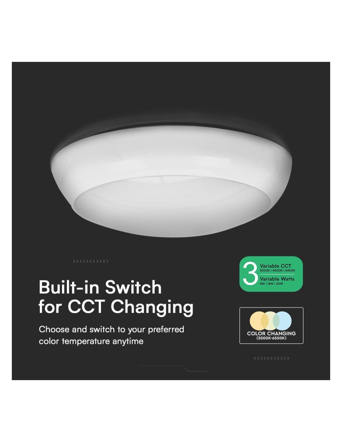 V-TAC PRO Plafoniera LED Chip Samsung Rotonda 20W con Sensore di Movimento a Microonde Colore Bianco 3in1 IP65