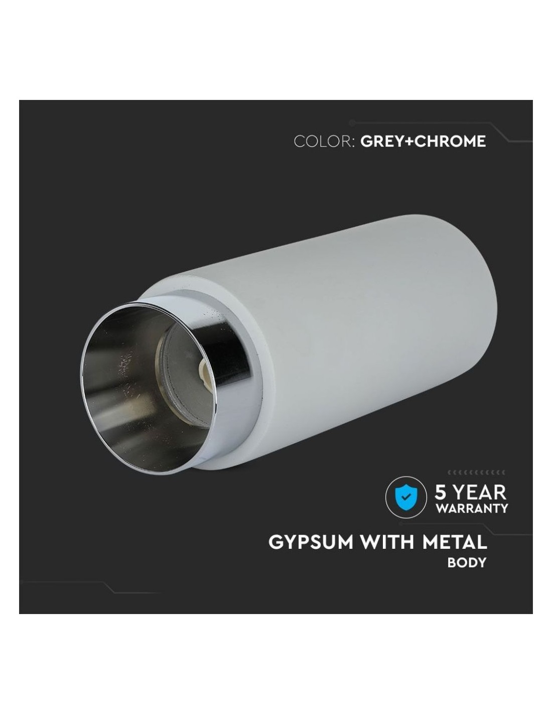 V-TAC Portafaretto LED Montaggio a Plafone Rotondo GU10 e GU5.3 (MR16) Corpo in Gesso e Calcestruzzo Grigio e Metallo Cromato