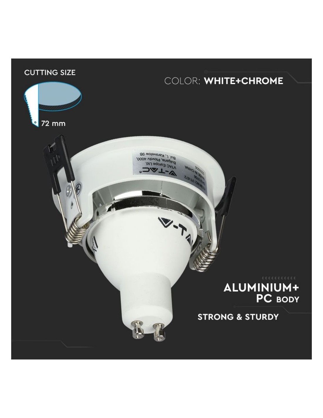 V-TAC Portafaretto LED da Incasso GU10 Rotondo Colore Bianco con Supporto Orientabile Cromato