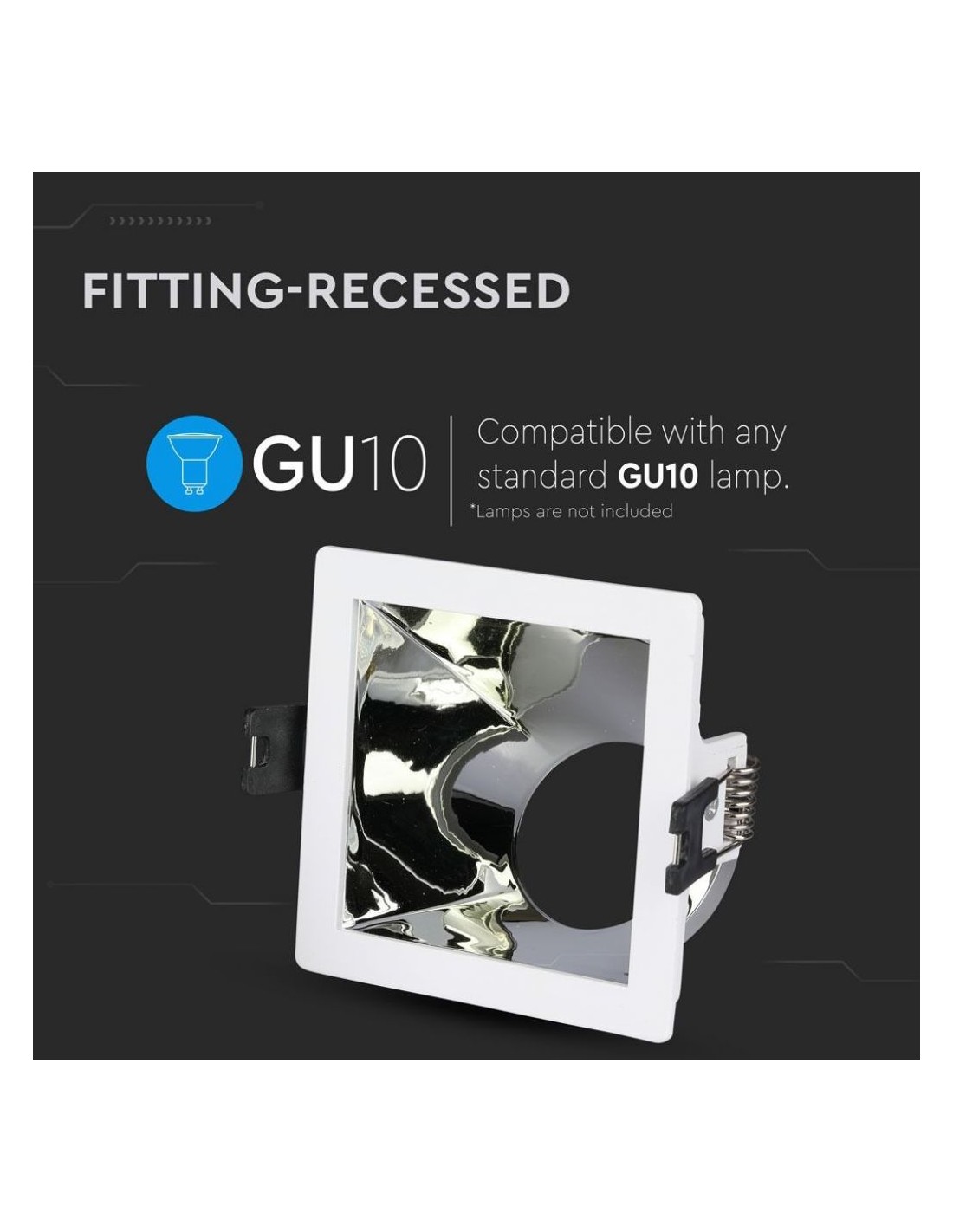V-TAC Portafaretto LED da Incasso GU10 Quadrato Colore Bianco con Supporto Inclinato Cromato